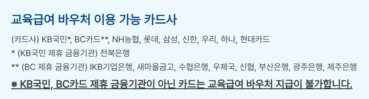 교육 지원 제도인 만큼 바우처 혜택을 최대한 활용하는 것이 중요합니다. 잔액 관리에 어려움이 있다면 언제든 카드사에 문의해 주시기 바랍니다.